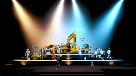 现场大屏幕上,黄仁勋展示了不同形态、不同用途的机器人,它们被集中展示在分层舞台上:从人形机器人、双足与轮式服务机器人,到工业机械臂、工程机械、无人机与手术辅助设备,展现出一版“机器人生态图景”。
