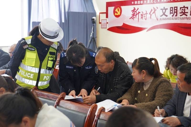 同时,民警现场为群众讲解考试流程、驾驶证申领须知以及道路交通安全法律法规,结合农村典型交通事故案例,科普无证驾驶、不佩戴安全头盔等交通违法行为的危害,进一步提升群众交通安全意识。